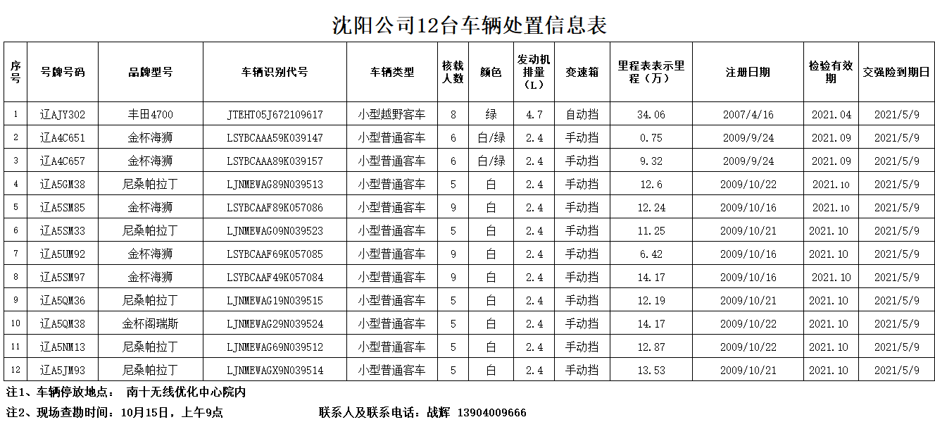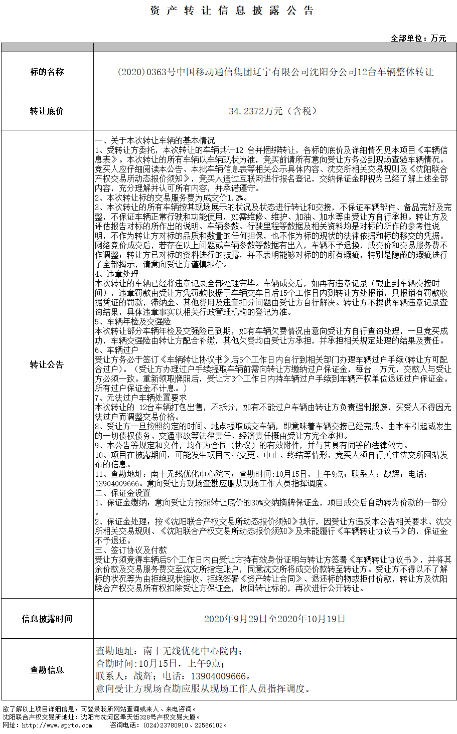 (2020)0363號(hào)中國(guó)移動(dòng)通信集團(tuán)遼寧有限公司沈陽(yáng)分公司12臺(tái)車(chē)輛整體轉(zhuǎn)讓