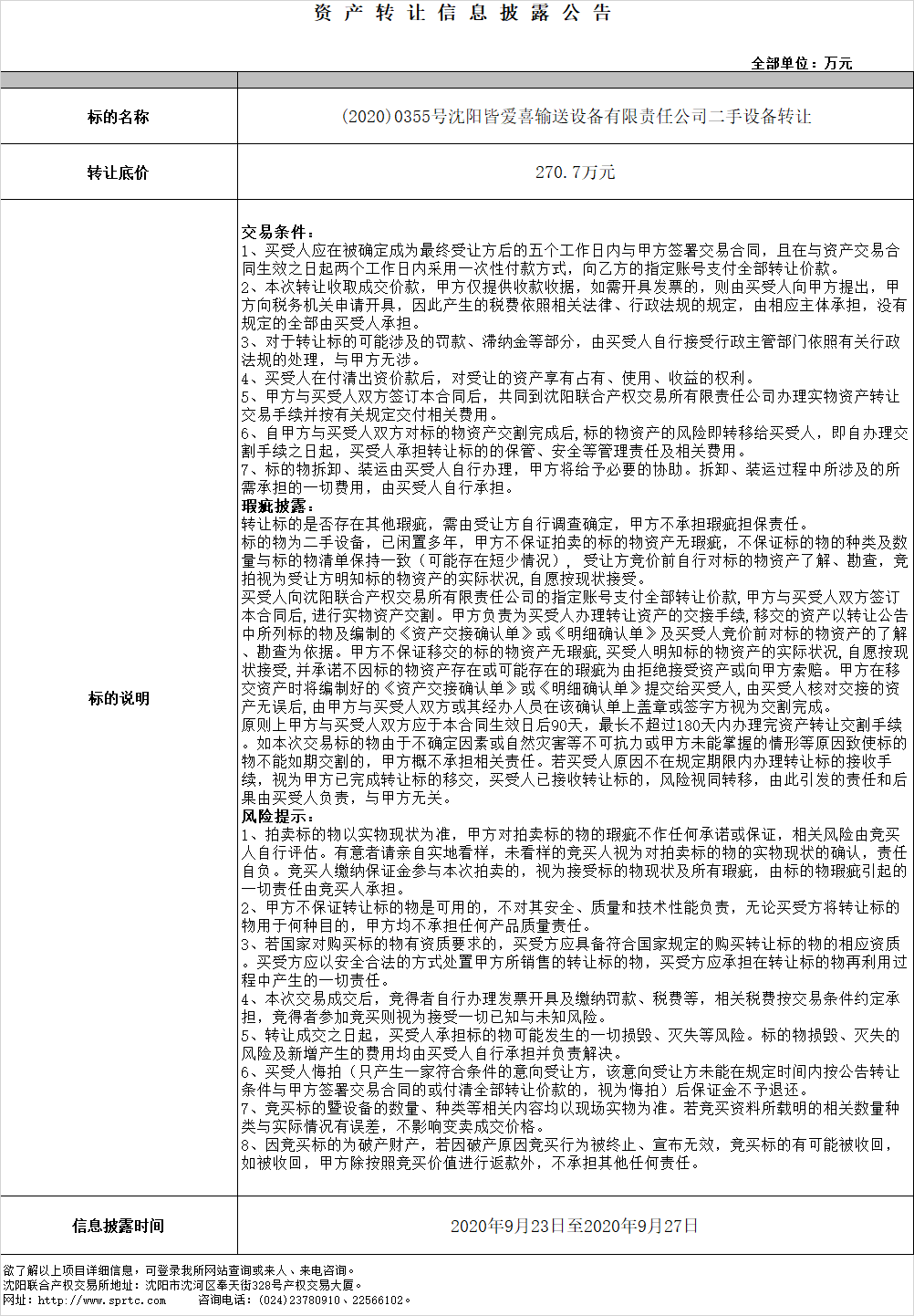 沈陽(yáng)皆愛(ài)喜輸送設(shè)備有限責(zé)任公司二手設(shè)備轉(zhuǎn)讓?zhuān)ǖ谝话?/span>