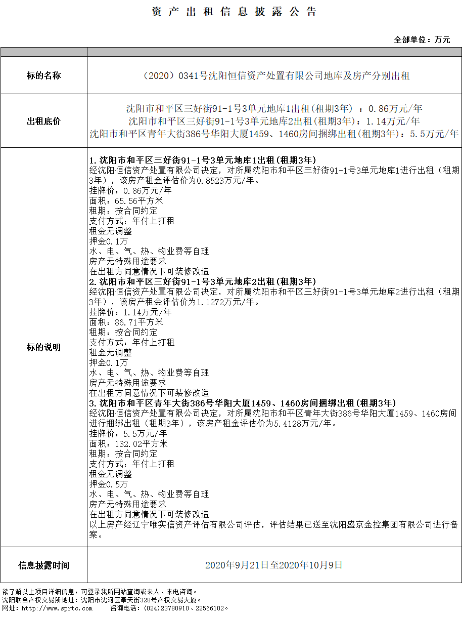 沈陽市和平區(qū)青年大街386號華陽大廈1459、1460房間捆綁出租(租期3年)