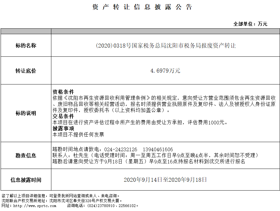 國家稅務(wù)總局沈陽市稅務(wù)局行政事業(yè)單位報廢資產(chǎn)轉(zhuǎn)讓