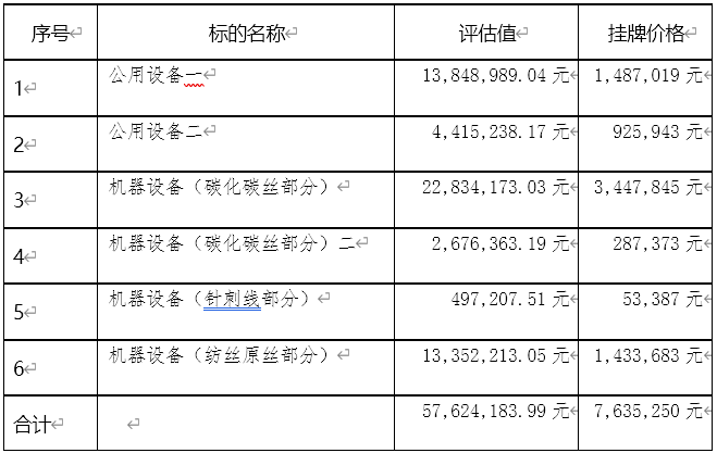 沈陽(yáng)中恒新材料有限公司(碳化碳絲部分二) 第五次掛牌