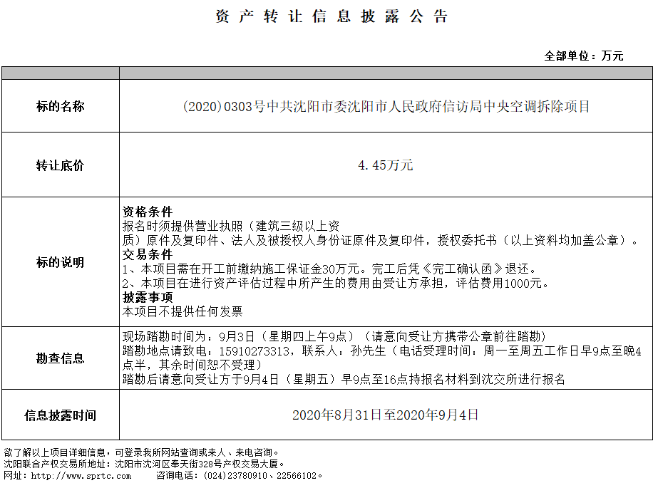 (2020)0303號中共沈陽市委沈陽市人民政府信訪局中央空調拆除項目