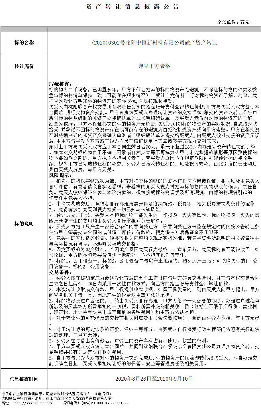 沈陽中恒新材料有限公司房屋公用設備一