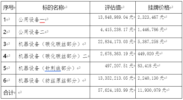 沈陽(yáng)中恒新材料有限公司二手設(shè)備包機(jī)器設(shè)備(碳化碳絲部分)三次掛牌
