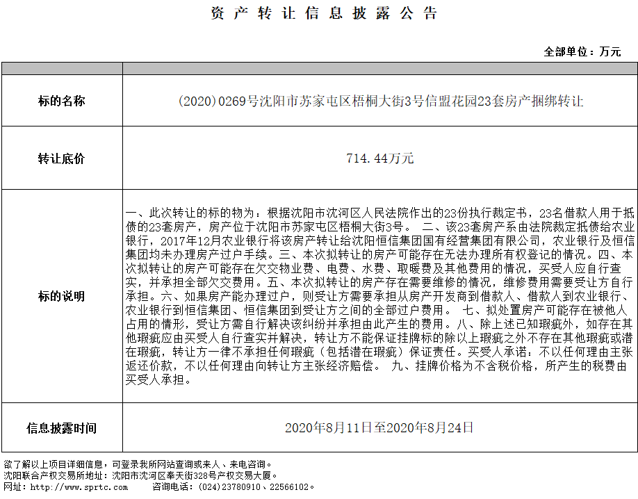 沈陽市蘇家屯區(qū)梧桐大街3號信盟花園23套房產(chǎn)捆綁轉(zhuǎn)讓