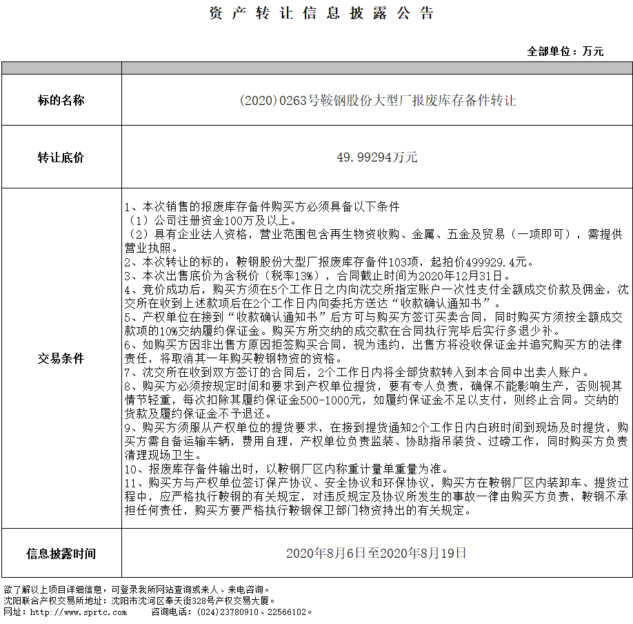鞍鋼股份大型廠報(bào)廢庫(kù)存?zhèn)浼D(zhuǎn)讓