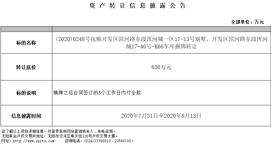 撫順開發(fā)區(qū)濱河路東段渾河城一區(qū)17-13號別墅、開發(fā)區(qū)濱河路東段渾河城17-40號-K66車庫捆綁轉(zhuǎn)讓