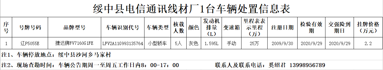 (2020)0243號(hào)綏中縣電信通訊線材廠1臺(tái)車輛分別轉(zhuǎn)讓