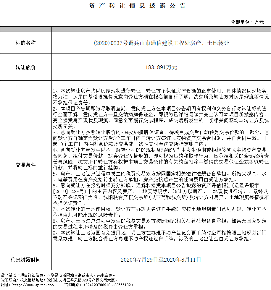 調(diào)兵山市通信建設(shè)工程處房產(chǎn)、土地