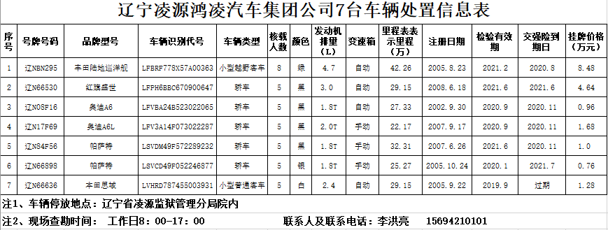 (2020)0234號遼寧凌源鴻凌汽車集團(tuán)公司7臺車輛分別轉(zhuǎn)讓