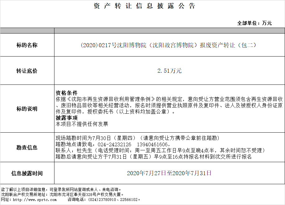 沈陽(yáng)博物院(沈陽(yáng)故宮博物院)報(bào)廢資產(chǎn)轉(zhuǎn)讓(包二)