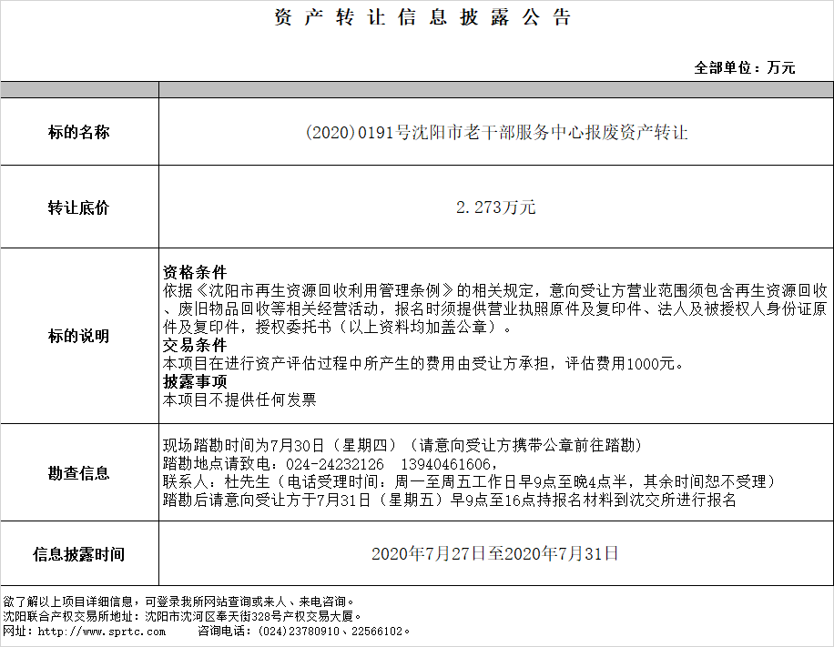 沈陽(yáng)市老干部服務(wù)中心報(bào)廢資產(chǎn)轉(zhuǎn)讓