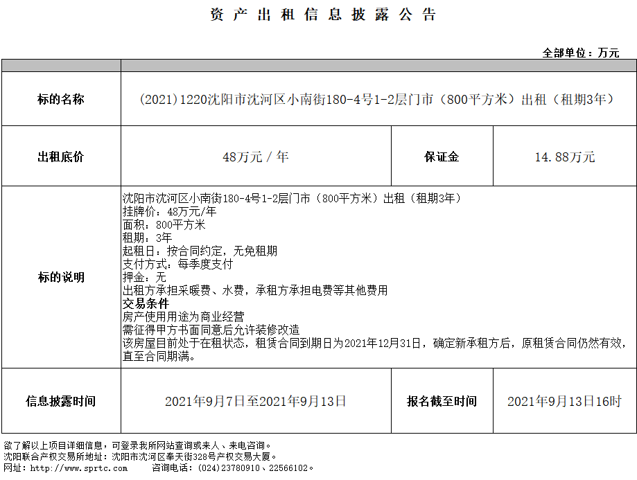 沈陽(yáng)市沈河區(qū)小南街180-4號(hào)1-2層門(mén)市(800平方米)出租(租期3年)