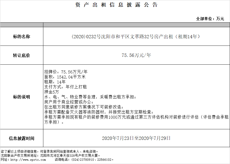 沈陽市和平區(qū)文萃路32號房產(chǎn)出租 (租期14年)