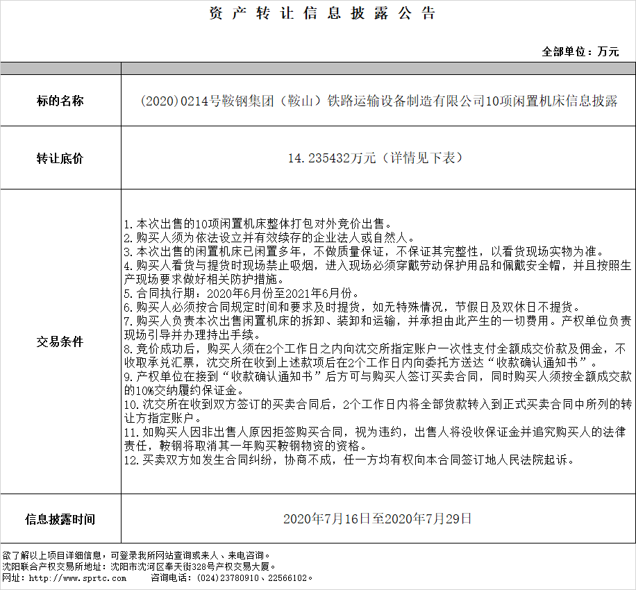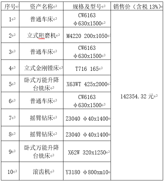 鞍鋼集團(鞍山)鐵路運輸設備制造有限公司10項閑置機床