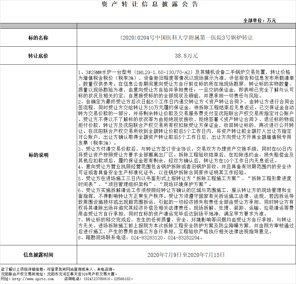 中國(guó)醫(yī)科大學(xué)附屬第一醫(yī)院3號(hào)29MW 燃煤熱水二手鍋爐轉(zhuǎn)讓。