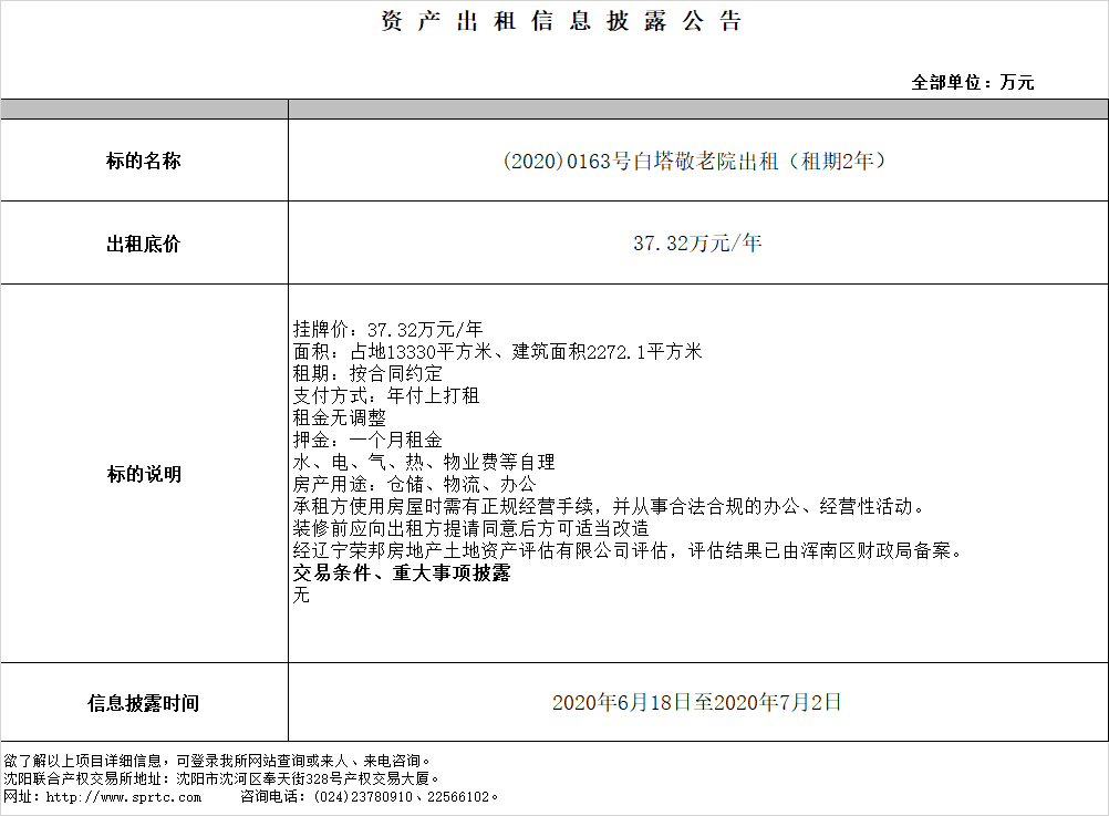沈陽市渾南區(qū)白塔敬老院出租(租期2年)