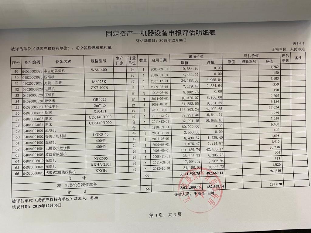 遼寧省盤(pán)錦橡塑機(jī)械廠66項(xiàng)報(bào)廢資產(chǎn)現(xiàn)場(chǎng)查勘要求