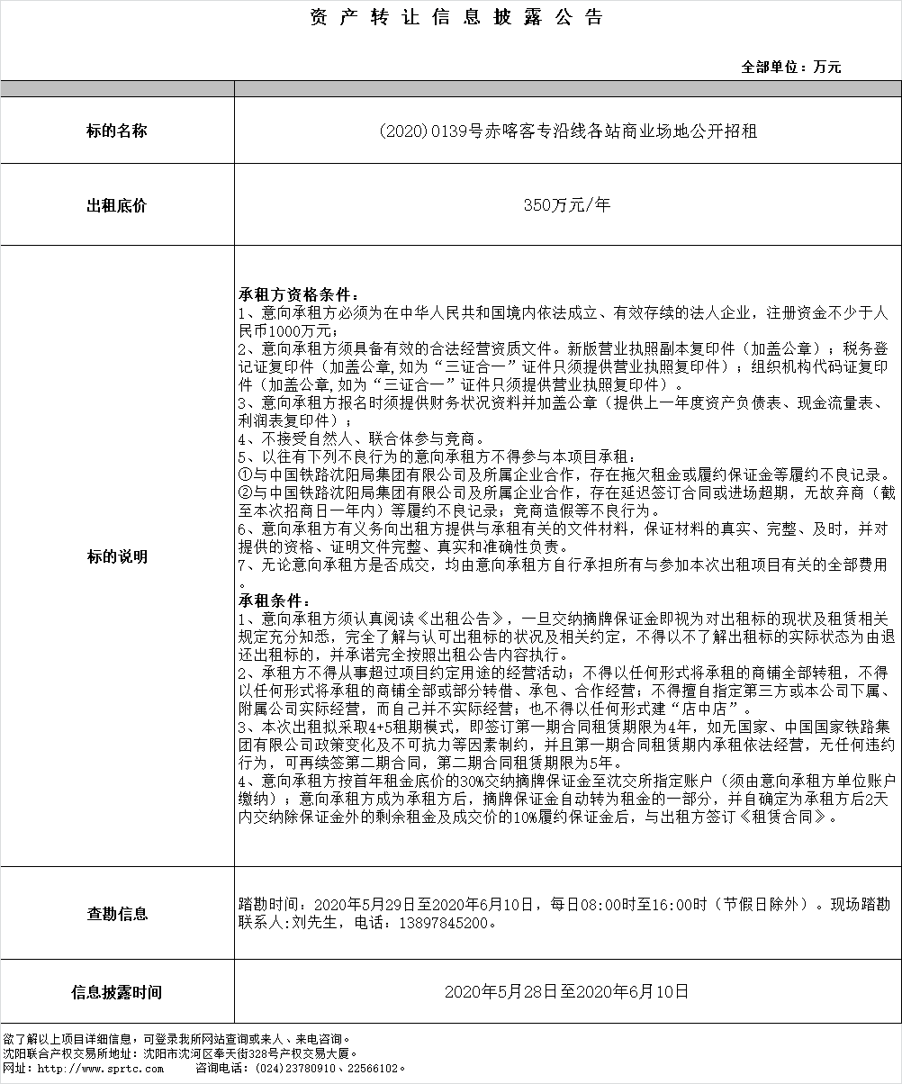項(xiàng)目鏈接:赤喀客專沿線各站商業(yè)場(chǎng)地公開出租。