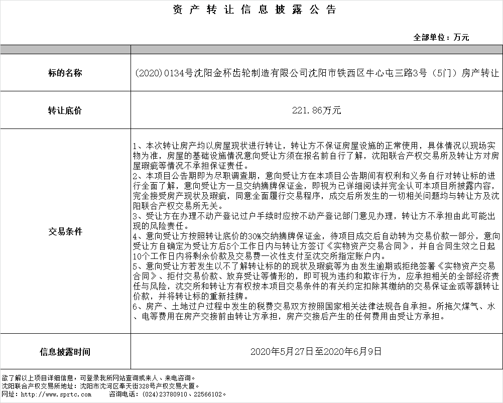 沈陽(yáng)市鐵西區(qū)牛心屯三路3號(hào)(5門)房產(chǎn)轉(zhuǎn)讓。