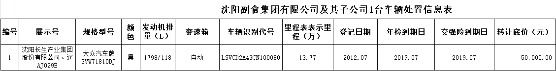 (2020)0113號沈陽副食集團有限公司1臺車輛轉(zhuǎn)讓