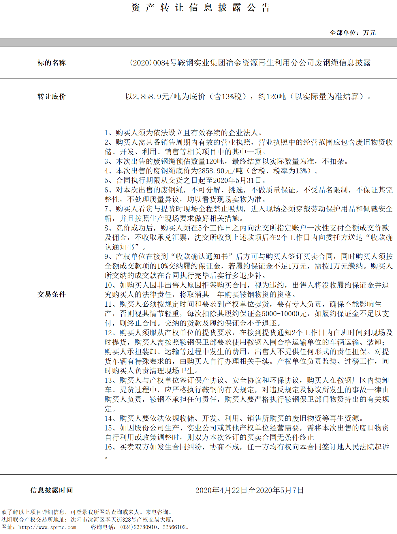 鞍鋼實業(yè)集團有限公司冶金資源再生利用分公司廢鋼繩。