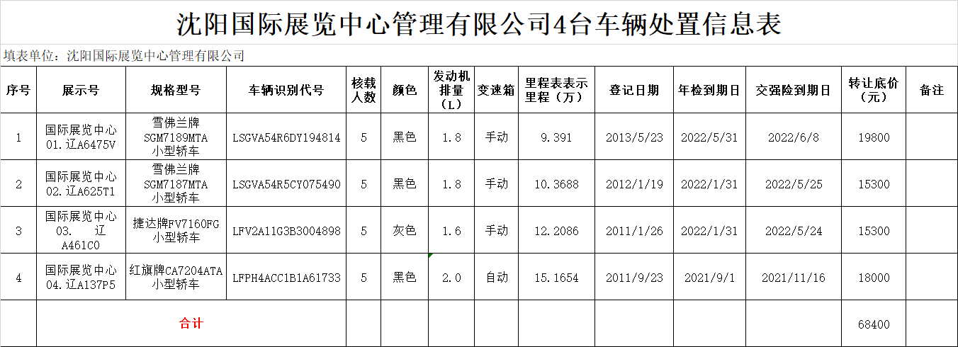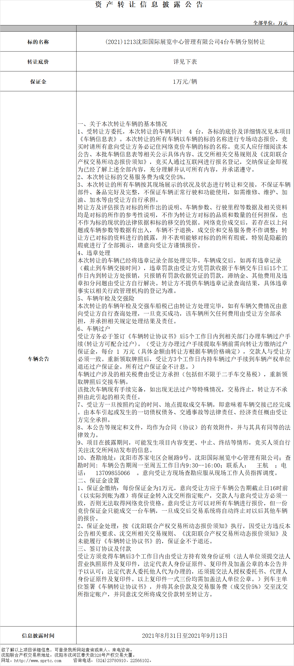 (2021)1213沈陽國際展覽中心管理有限公司4臺車輛分別轉(zhuǎn)讓