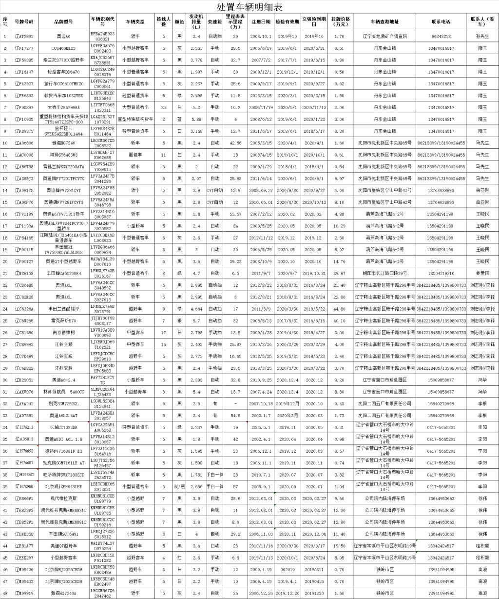 (2020)0003號遼寧省地質勘探礦業(yè)集團有限責任公司48臺車輛分別轉讓