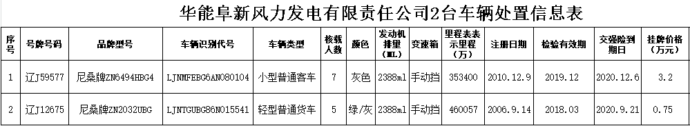 (2020)0058號(hào)華能阜新風(fēng)力發(fā)電有限責(zé)任公司2臺(tái)車輛分別轉(zhuǎn)讓