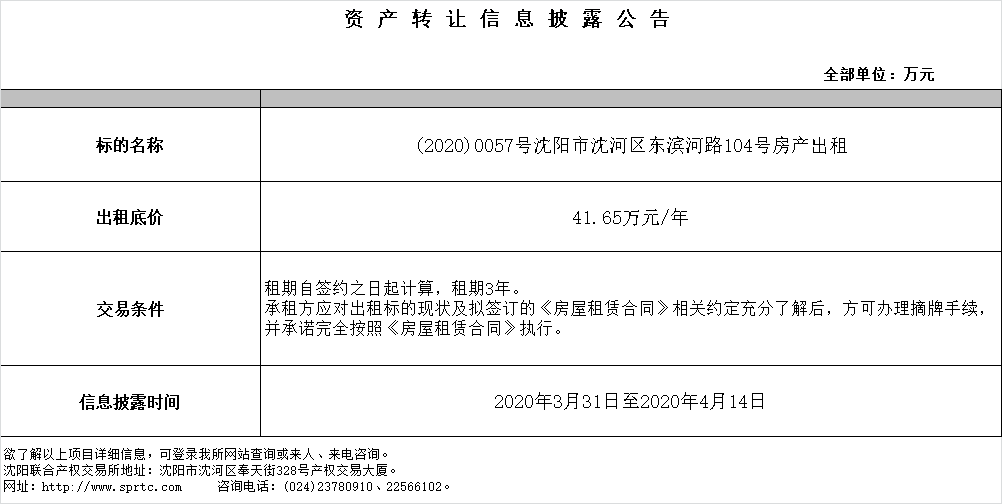 沈陽市沈河區(qū)東濱河路104號(hào)房產(chǎn)出租。