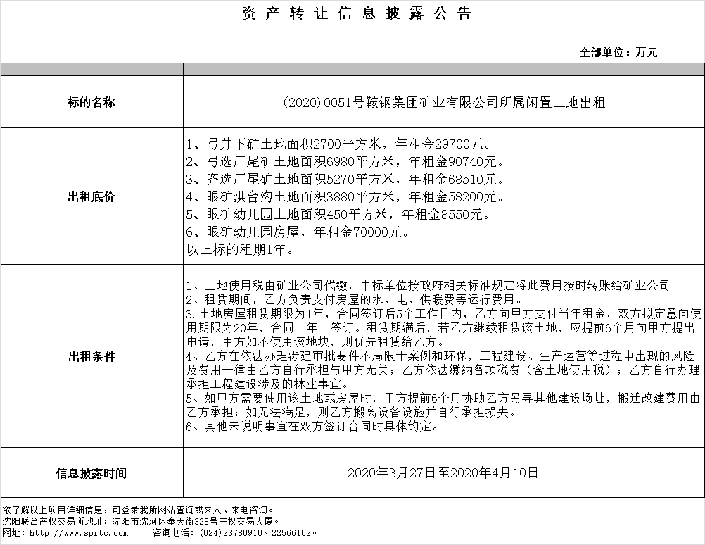 鞍鋼集團礦業(yè)公司弓井下礦閑置土地出租;