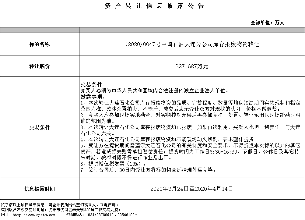 中國石油大連分公司庫存報廢物資轉(zhuǎn)讓。