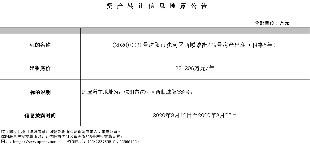 沈陽市沈河區(qū)西順城街229號(hào)房產(chǎn)出租(租期5年)。