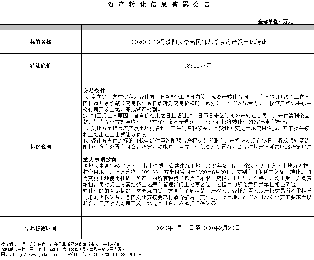 沈陽大學新民師范學院 房產(chǎn)及土地轉(zhuǎn)讓。
