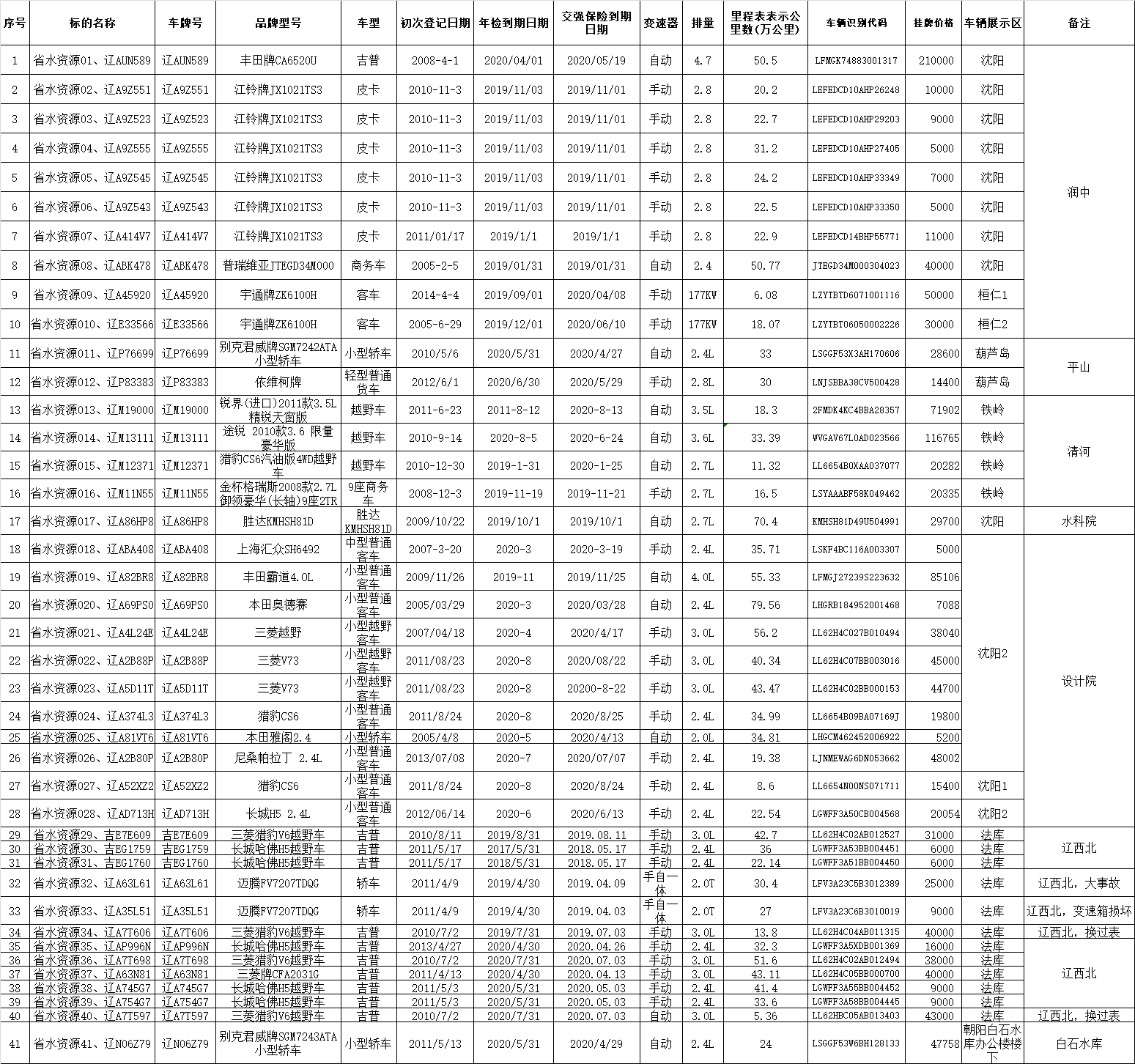 (2020)0013號遼寧省水資源管理集團有限責(zé)任公司41臺車輛轉(zhuǎn)讓