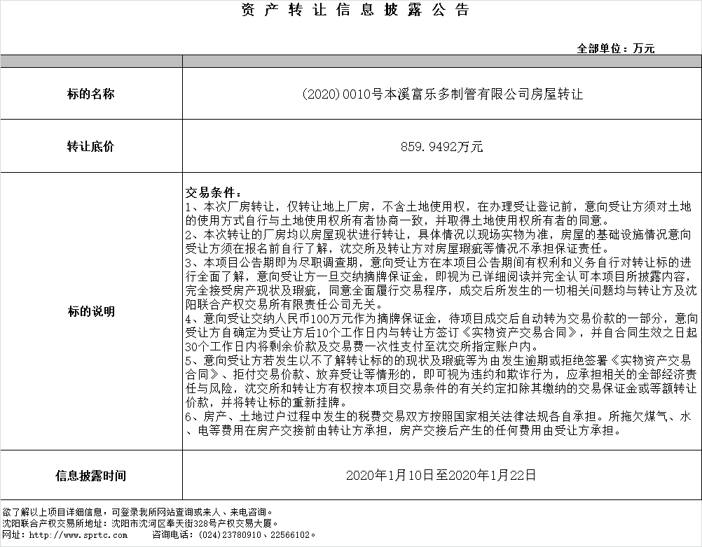 本溪富樂(lè)多制管有限公司房產(chǎn)轉(zhuǎn)讓。