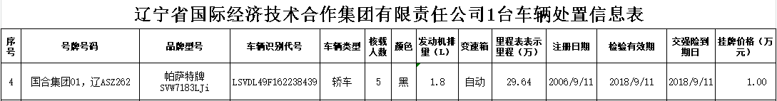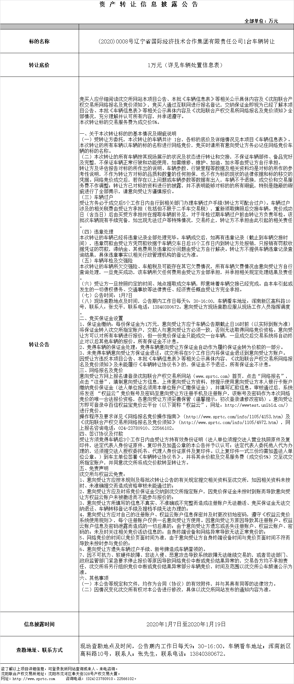 (2020)0008號遼寧省國際經(jīng)濟技術(shù)合作集團有限責(zé)任公司1臺車輛轉(zhuǎn)讓