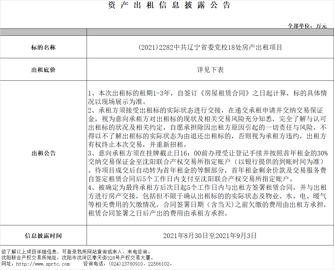 (2021)2282中共遼寧省委黨校18處房產(chǎn)出租項(xiàng)目