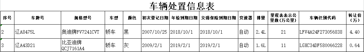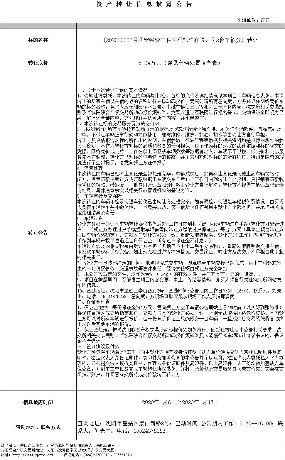 (2020)0002號遼寧省輕工科學(xué)研究院有限公司2臺車輛分別轉(zhuǎn)讓