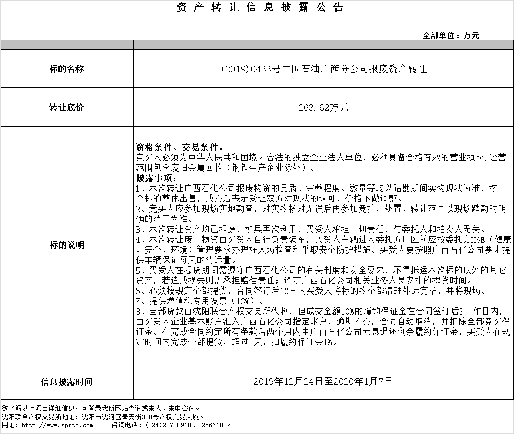 中國石油廣西分公司報廢資產(chǎn)轉(zhuǎn)讓。