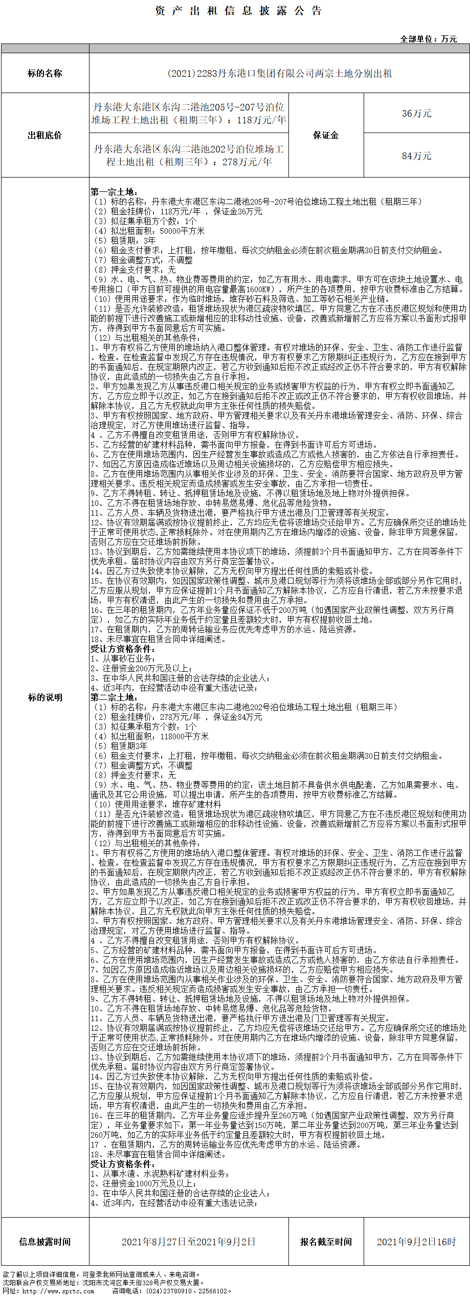 丹東港大東港區(qū)東溝二港池202號(hào)泊位堆場(chǎng)工程土地出租(租期三年)