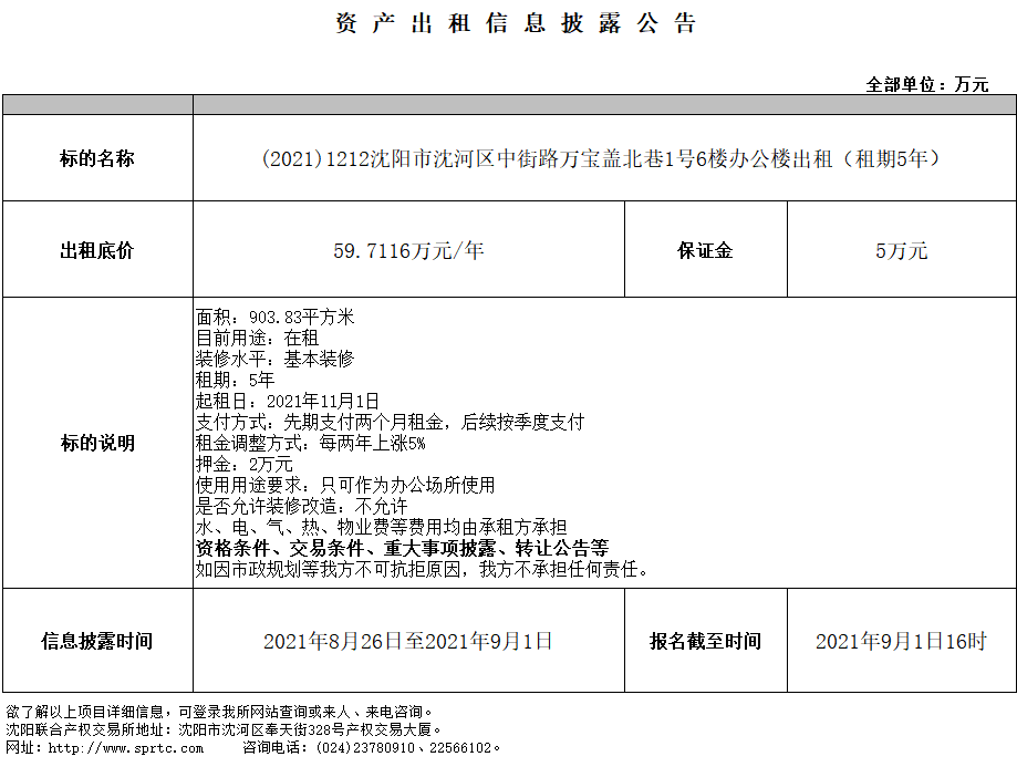 沈陽市沈河區(qū)中街路萬寶蓋北巷1號6樓辦公樓出租(租期5年)