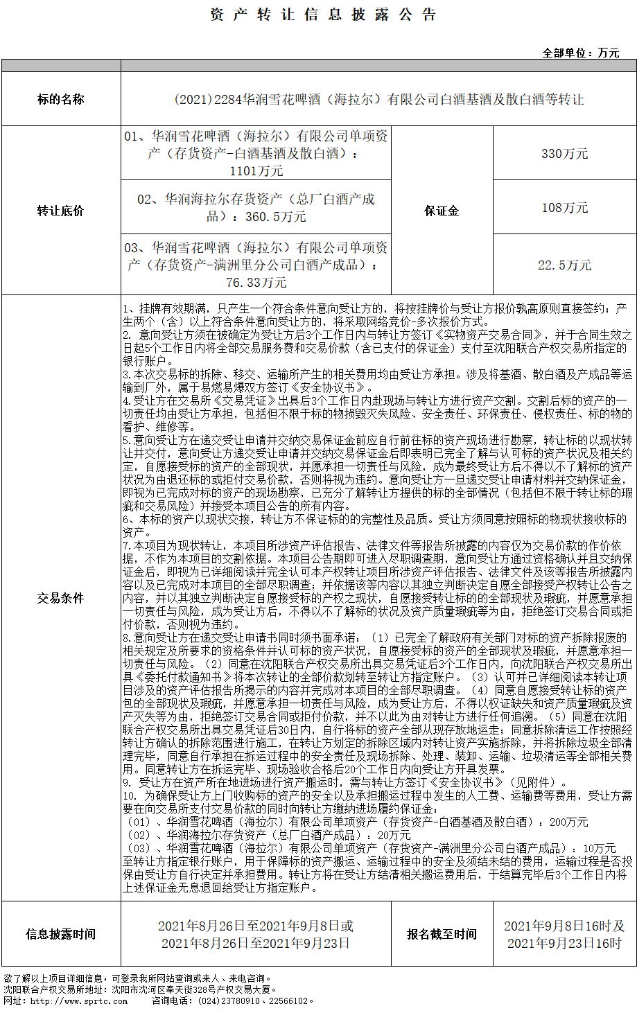 華潤(rùn)雪花啤酒(海拉爾)有限公司單項(xiàng)資產(chǎn)(存貨資產(chǎn)-白酒基酒及散白酒)