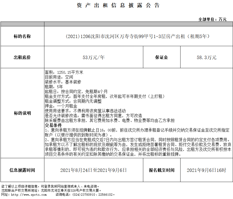 沈陽(yáng)市沈河區(qū)萬壽寺街99甲號(hào)1-3層房產(chǎn)出租(租期5年)