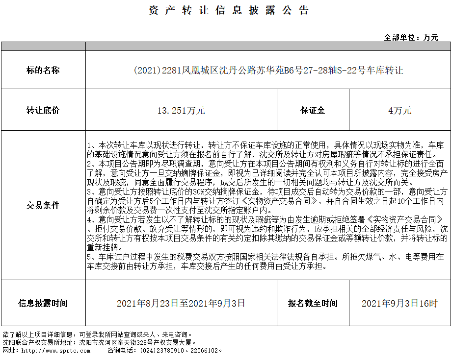 鳳凰城區(qū)沈丹公路蘇華苑B6號27-28軸S-22號車庫轉(zhuǎn)讓