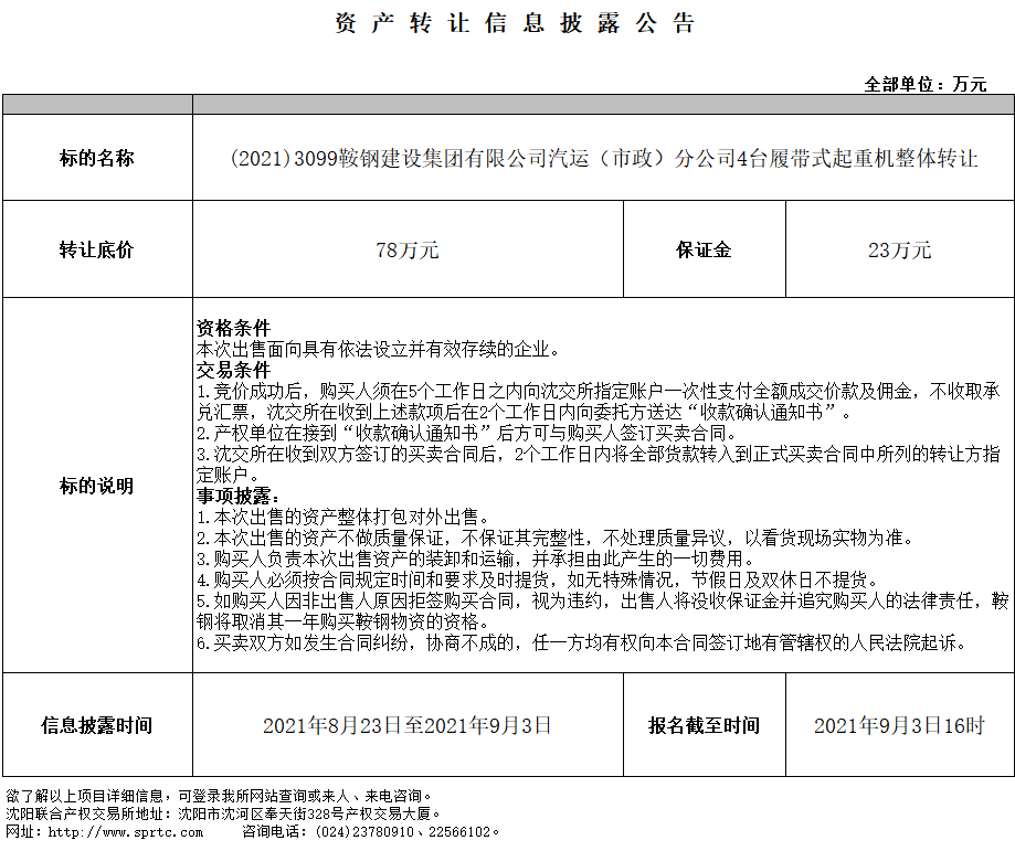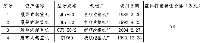 鞍鋼建設(shè)集團(tuán)有限公司汽運(yùn)(市政)分公司4臺(tái)履帶式起重機(jī)轉(zhuǎn)讓