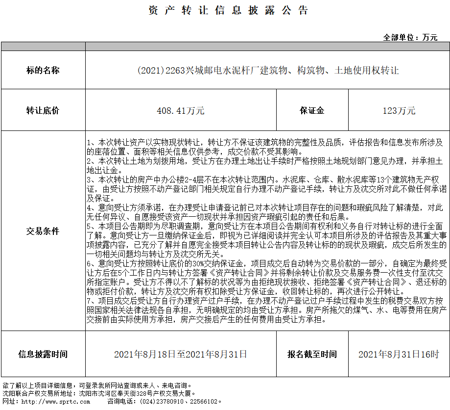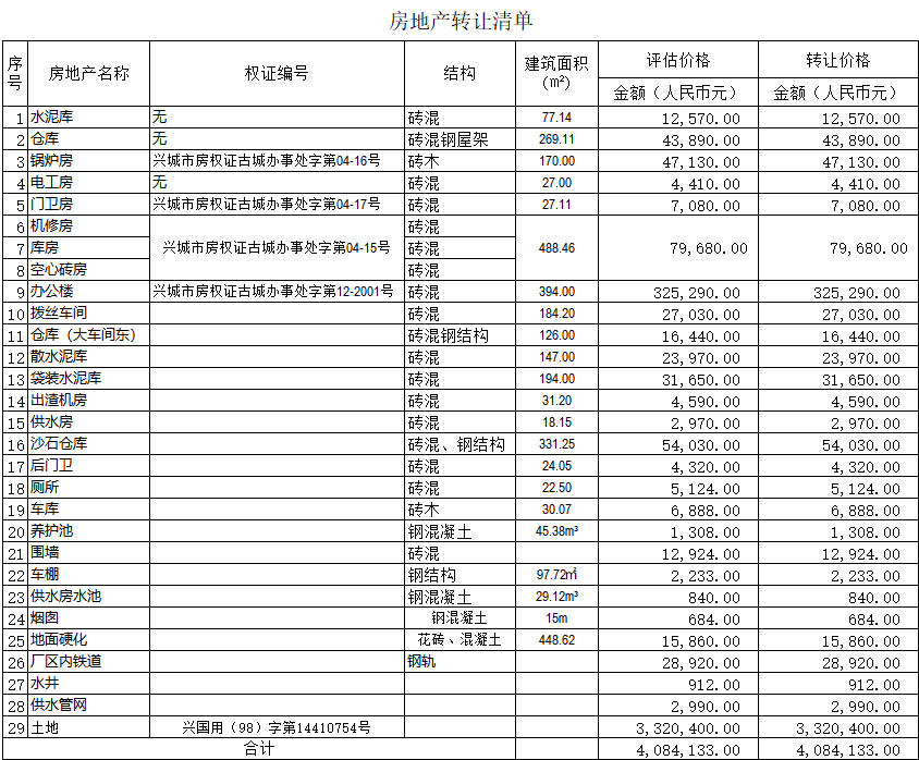 興城郵電水泥桿廠建筑物、構(gòu)筑物、土地使用權(quán)轉(zhuǎn)讓