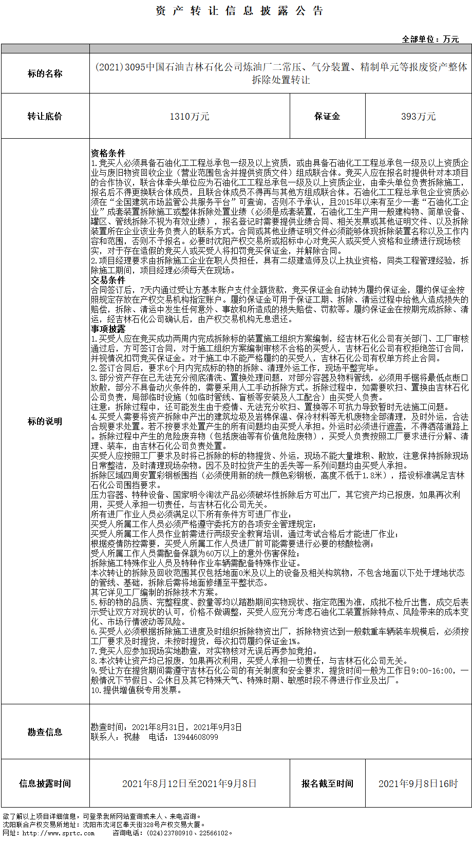 中國(guó)石油吉林石化公司煉油廠二常壓、氣分裝置、精制單元等報(bào)廢資產(chǎn)整體拆除處置項(xiàng)目