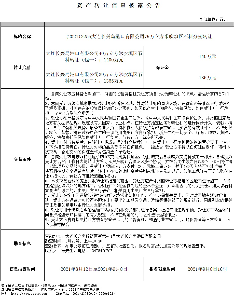 大連長興島港口有限公司40萬立方米吹填區(qū)石料轉(zhuǎn)讓(包一)