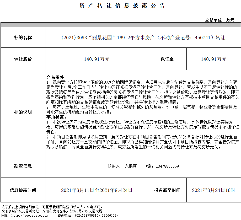 “麗景花園”169.2平方米房產(chǎn)(不動產(chǎn)登記號450741)轉(zhuǎn)讓